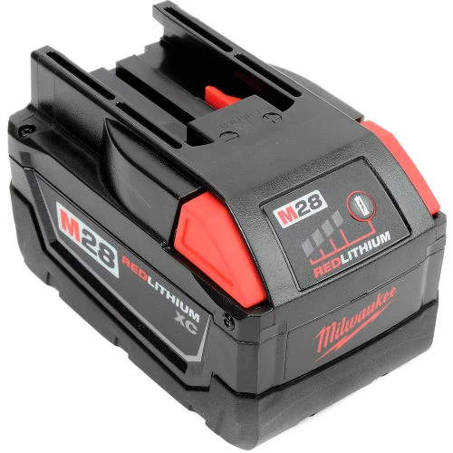 Powering the entire M28â„¢ LITHIUM-ION system, this re-designed and improved battery pack provides the durability, run-time and power needed to complete the toughest jobs. This improved battery pack features Milwaukee’s Digital Power Management system, which helps to ensure that optimal battery life and run-time is achieved, while protecting the battery and tool during the toughest jobsite applications.